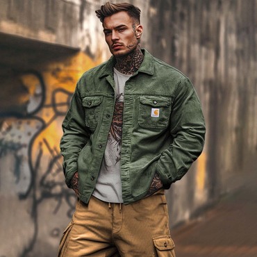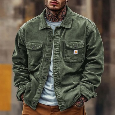Men's Vintage Corduroy Pocket Chic Lapel Collar Outdoor Work Shirt Jacket