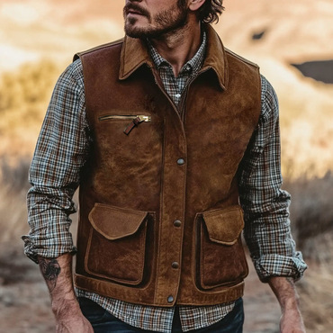 Men's Vintage Suede Multi-pocket Chic Outdoor Motorcycle Lapel Vest Jacket